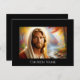 Um inspirador cartão de visita religioso cristão que apresenta Jesus sorrindo numa floresta celestial com belos raios de sol. Perfeito para igrejas, Bíblias, escolas cristãs ou livrarias religiosas.