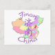 Jinan, da província de Shandong, em um mapa colorido da China, inclui os símbolos chineses para 'Jinan' e sua localização está marcada no mapa com coração e bandeira. Um presente único e divertido! Projetada por Hendrika em RedThreadMaps.com