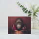 Este cartão postal desportivo encorajador com o texto padrão personalizável "sempre pronto e alerta" apresenta um orangotango com uniforme de basquete segurando uma bola de basquete. Excelente para os entusiastas do basquete!