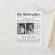 Jornal Salve o Cartão-postal com fotos de um casal feliz como crianças e uma história exclusiva. Esta é uma forma única de deixar que seus entes queridos saibam que você está comprometido e que eles devem salvar a data. A manchete é: Essas crianças vão se casar! Assim você pode compartilhar sua história de noivado com sua família e amigos. Veja o resto da coleção para mais layouts de jornal e outras datas exclusivas.
