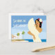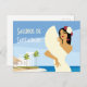 Cartão Postal Jovem Espanhola posando com fã na costa oceânica