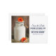Um cartão postal de data salva com um design rústico. Uma jarra de leite branca e um casal de flores laranja sentadas num celeiro sobre um feno. Painéis de madeira no fundo.