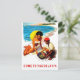 Cartão Postal Jugoslávia, mulher na praia com vendedor de frutas