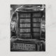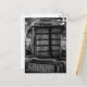 Um cartão postal com uma fotografia a preto e branco de uma mala de mesa.