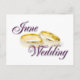 Cartão postal June Wedding com dois anéis de casamento.