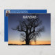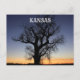 Uma fotografia de um Colorido Kansas Sunset que é brilhante e colorido. Isso é em Twilight, ao sul de Sterling Kansas USA com uma Silhouette de Árvore. Está num cartão POSTE.
