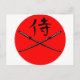 Cartão Postal Katana japonesa e Samurai Kanji