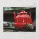 Cartão Postal Kettle Vermelho Romântico de Chá