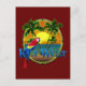 Pintura do pôr do sol Key West Beach com palmeiras, estrutura redonda de bambu e um papagaio colorido.