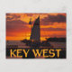 Key West, a imagem do pôr do sol da Flórida em cores vivas é um lembrete de ver essas lindas pôrs do sol da Praça Mallory. O oceano é escuro, o céu é laranja e vermelho, e os veleiros que passam são românticos. As palavras "Key West" em uma fonte divertida na parte inferior.