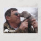 Cliff guarda um cachorrinho Weimaraner de seis semanas; beija-o no nariz.