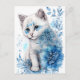 Cartão Postal Kitten Branco e Azul com Flores