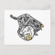 Um desenho de um gatinho brincando com um hamster numa bola de hamster.