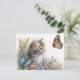 Cartão Postal Kitten Staring At Butterfly Floral Art