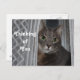 Personalize este cartão-postal ponderado com a sua própria fotografia ou use a fotografia do meu gato. O texto também pode ser personalizado. O texto atual diz "Pensando em você" Deixe um amigo saber que você se importa enviando-lhe este belo cartão de posto. O cartão perfeito para enviar a um amante de gatos.