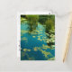 uma bonito cena serena de uma lagoa koi com almofadas de lírios e gramíneas marinhas em tons azuis-verdes e amarelos.