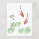 Uma pintura Zen de dois koi num lago koi com lírios de água branca e almofadas de lírios de água.
