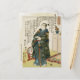 Este postal de arte japonês, antigo, mostra a impressão de bloco de madeira que representa o herói de guerra Takenaka Hanbei, da série Taiheiki Eiyuden, ou "Heróis da Paz Excelente" (1846-47). Hanbei foi um samurai japonês durante o período Sengoku do século XVI. Ele era um grande estrategista e conselheiro de Toyotomi Hideyoshi. Um dos últimos excelentes no estilo ukiyo-e japonês, o artista ukiyo-e Utagawa Kuniyoshi foi um mestre indiscutível do impressão de bloco de madeira guerreiro. Nascer em Tóquio, em 1797, tornou-se um aprendiz de um famoso mestre em impressões aos 12 anos.
