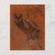 Gato negro em uma lápide em um pano de fundo vermelho e preto.