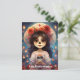 O cartão postal apresenta uma incrível representação de "La Calavera Catrina: Blossoms of Life" em seu centro. As cores vibrantes saltam da superfície brilhante, desenhando o olho com sua forte atração. O trabalho de arte é delimitado por uma fina e elegante moldura, acrescentando um toque de sofisticação à composição. No primeiro plano, La Calavera Catrina fica alta e graciosa, sua presença chamando a atenção. Seu vestido com padrão floral irradia uma série de matizes vivos, cativando o espectador com seus intrincados detalhes. Os pinceladas delicados trazem um senso de textura para as flores, fazer que pareçam quase semelhantes à vida. A visagem de Catrina é um testemunho da habilidade da artista, com suas carinhosas características delicadamente apresentadas. As bochechas rosadas e os olhos cintilantes a infundem com um charme lúdico, enquanto seus lábios se curvam em um sorriso gentil, irradiando calor e vida. Um chapéu resplandecente, adorado com uma profusão de florescências e de folhagem verdiana, perfura a cabeça de Catrina, conferindo-lhe um ar de esplendor real. O chapéu lança uma sombra suave sobre o rosto, acrescentando profundidade e dimensão ao retrato. Cravado nas mãos da Catarina, um crânio de açúcar meticulosamente trabalhado ganha palco central. Seus intrincados padrões e cores vívidas servem como um lembrete pungente do delicado equilíbrio entre vida e morte, oferecendo uma profunda contemplação do caráter transitório da existência. Uma névoa delicada, que lembra derrames de aquarelas, envolve a Catrina e o espaço ao redor. Essa aura etérea dá à cena um sonho de qualidade, como se convidasse o telespectador a entrar num mundo onde as fronteiras entre a realidade e a imaginação se desfocam. No geral, esse cartão postal é uma obra-prima visual, capturando a essência de "La Calavera Catrina: Blossoms of Life" em um formato portátil e compartilhável, convidando os destinatários a se divertir em sua beleza e contemplar os temas profundos que ele evoca.