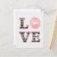 Este design apresenta um conjunto pastel de lábios e AMOR em um padrão listrado preto e branco.