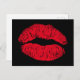 Cartão Postal Lábios de Beijo Vermelho em Preto