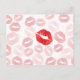 Este padrão divertido apresenta vários impressões de batom vermelho em um fundo branco.