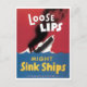 Vintage, poster da Segunda Guerra Mundial, alerta para o descuido discurso sobre movimentos de navios e o risco de espionagem e guerra de torpedos.