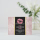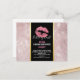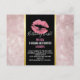 Cartão postal de aniversário ou outro evento com um fundo composto por folhas tropicais em tom dourado rosa. Sobreposto a isso há uma moldura preta com uma borda gradiente dourada, dentro estão lábios cor-de-rosa cintilantes.