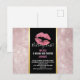 Cartão Postal Lábios Rosa e Folhas Tropicais em Tom Dourado Rosa