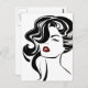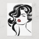 Tema brilhante, feminino vintage em preto e branco. Uma bela mulher com lábios vermelhos e cabelo encaracolado. Divertido, retro desenho.