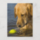 Cartão Postal Labrador amarelo com uma bola de tênis na água