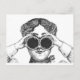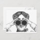 Desenho em linha vítrea de uma mulher com binóculos seguidos aos olhos