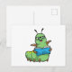 Cartão Postal Lagarta como Nerd com Livro e Óculos