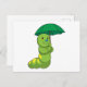 Cartão Postal Lagarta na Chuva com Guarda-chuva