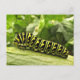 Aqui está um cartão-postal com a lagarta da Borboleta Negra (Papilio polyxenes), também conhecida como o Swallowtail Americano, Parsnip Swallowtail ou Parsley Worm. Esta espécie vive e janta em membros da família das saladas (incluindo cenouras, endro, funcho e pastinaria). Que criatura verde adorável, com bandas pretas repetidas, vistas com ouro e amarelo, que criam um padrão abstrato interessante. Esta está numa folha cercada por uma folhagem verde intensa.