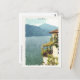 Um dos lagos italianos menos conhecidos, Lago d'Orta, no distrito do Piemonte. Uma vista do lago com os arcos de uma villa italiana coberta de videiras em primeiro plano, e o lago e montanhas ao fundo. Uma pintura digital a partir de uma foto de ruralfrance.
