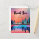Obrigado cartão postal com um belo design gráfico com um lago pacífico com veados. e pinheiros altos sendo refletidos na água. Estrelas sobrepõem-se.
