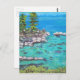 O lago Tahoe famoso por sua clareza, água azul-cobalto e picos com neve ao redor.