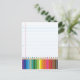 Um fundo de uma típica folha solta, página de notebook escolar, com um banco de lápis coloridos na parte inferior da página.