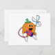 Cartão Postal Laranja como cabeleireiro com tesoura e secador