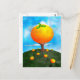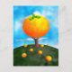 Conceito de ilustração ambientalmente amigável de uma laranjeira crescendo uma laranja gigante com muitas laranjas pequenas espalhadas pelo chão. Imagem disponível em vários presentes e produtos.