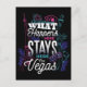 Bem-vindo a Vegas Baby! A cidade que nunca dorme. Este cartão-postal de viagem divertido apresenta a citação "O que acontece aqui fica em Vegas, Nevada. Las Vegas é a capital dos Estados Unidos. Cartões postais de Las Vegas são divertidos e podem ser usados em muitas ocasiões... * Souvenirs de Vacinação * Campanhas de promocional de negócios * Cartões de saudação - pensando em você, olá, saudades de você, etc. * Decorar Cartões * Correspondência diária. Role para baixo para ver os cartões postais adicionais de Las Vegas de que você pode gostar. Marcas: Estados Unidos, América, EUA, Las Vegas NV, Nevada,