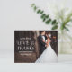Um obrigado elegante e rústico que você postcard com risos bonito e uma fotografia de sangramento de cheio. Personalize com uma foto do seu dia especial!