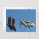 Um antigo par de meias de lã e uma bruxa pendura para secar fora numa linha de roupa de lavanderia. Fale sobre a sua roupa suja! ... ou, neste caso, a roupa limpa lavada recentemente! Personalize qualquer item com seu próprio ditado.