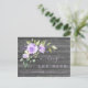 Precisa informar seus convidados de casamento que teve que mudar seu grande encontro? Por favor, use este cartão postal elegante. Design de cartão encantador com flores lavandas e folhas verdes, em fundo de celeiro antigo. Use a ferramenta Personalizar para adicionar suas informações. Para obter itens correspondentes, visite minha Coleção de Celebração de Casamento Adiado.