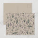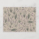Postcard featuring a seamless botanical pattern with lavender flowers, slender leaves and small blossoms arranged across a soft beige background. The illustration shows delicate hand drawn lavender sprigs in purple tones with muted green foliage, scattered in a natural repeating composition. Fine line details and soft colors create a calm botanical aesthetic inspired by garden herbs and wild plants.