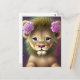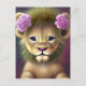 Cartão Postal Leão-Bebê-Cute com Flores Rosa Gráfico