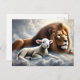 cartão postal leão e cordeiro