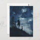 Uma deusa lua azul-d'água e uma lebre na silhueta em pé sobre uma colina alcança a lua crescente mágica pendurada no céu noturno nublado. Uma página de humor interessante a ser adicionada a um diário ou álbum de recortes, como um impressão de arte, afixar um conselho de humor, ou adicionar uma mensagem e carimbo no verso e deixar alguém saber como você tem sorte em conhecê-los.